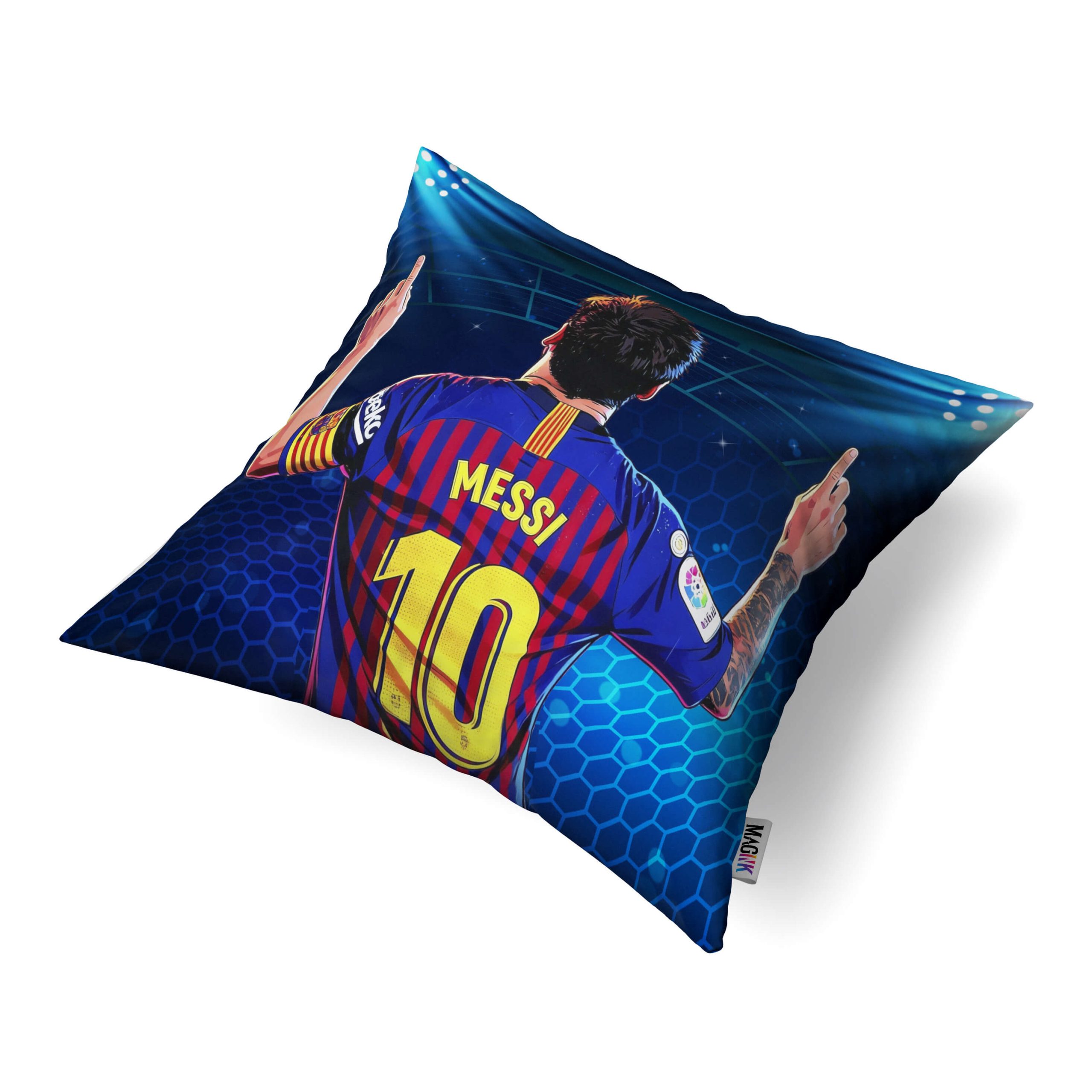 Este cojín captura la esencia y talento de uno de los más grandes jugadores de la historia. Perfecto para quienes admiran su estilo de juego, esta pieza única lleva la pasión futbolística a cualquier espacio.